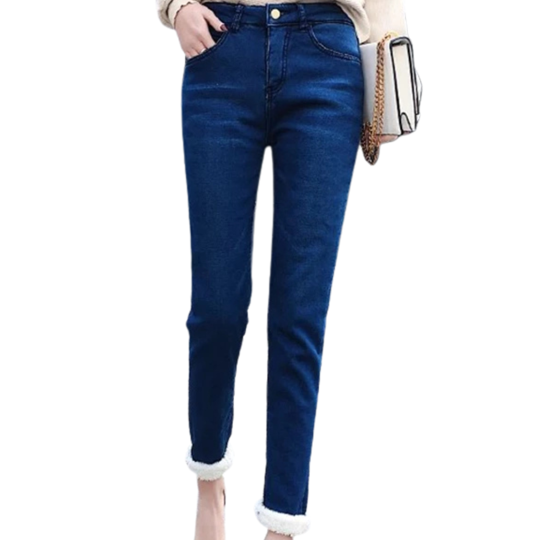 Women's Winter Pencil Jeans - High-Waist Lambwool Lined Skinny Denim