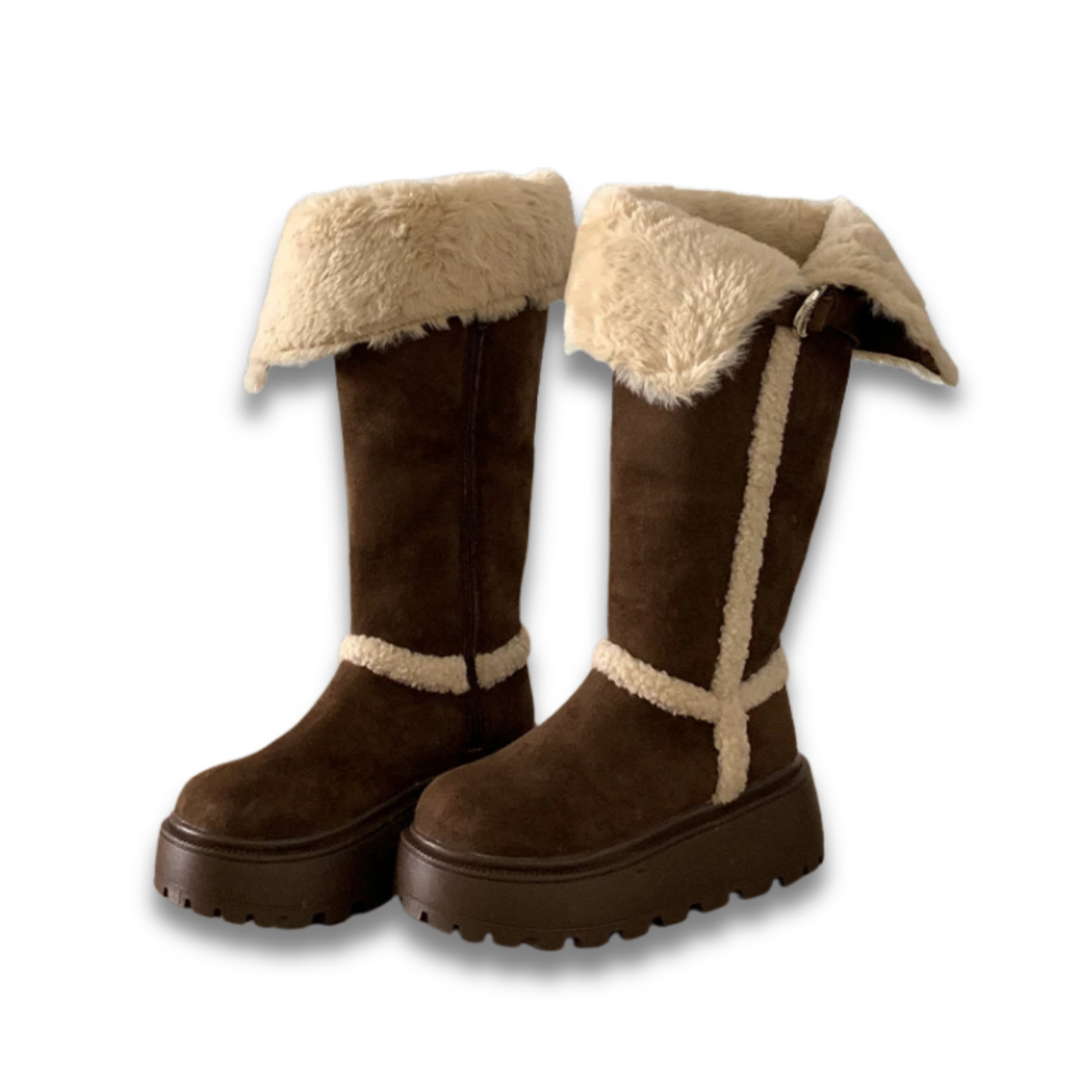 Women's Winter Snow Boots - Fur Lined Platform Flats Vintage Long Booties