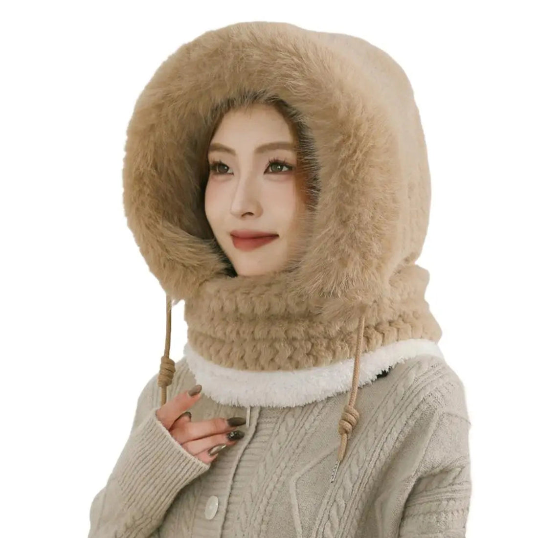Women's Winter Plush Hat & Scarf Set - Windproof Thermal Hood with Ear Protection