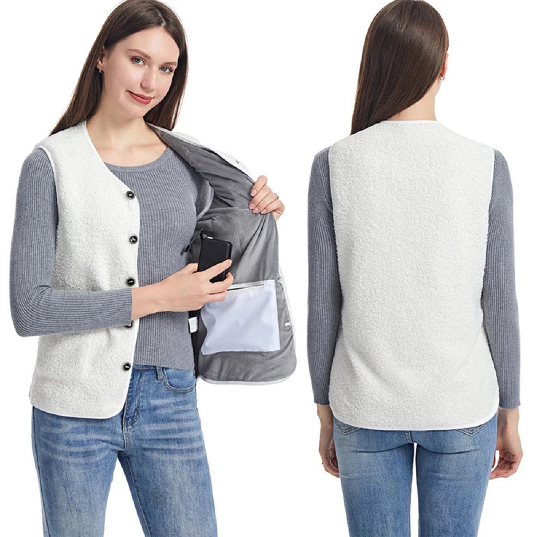 16-Zone USB Heated Vest - Teddy Velvet V-Neck Electric Warming Jacket